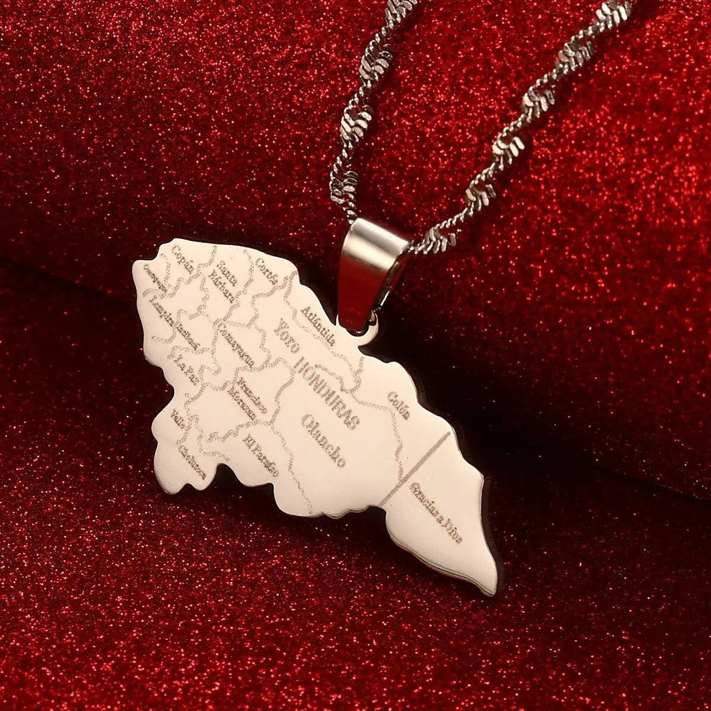 Celebrate your heritage with our Honduras Flag Map Necklace. Show your pride, support your country & wear your pendant with passion. Buy now!
