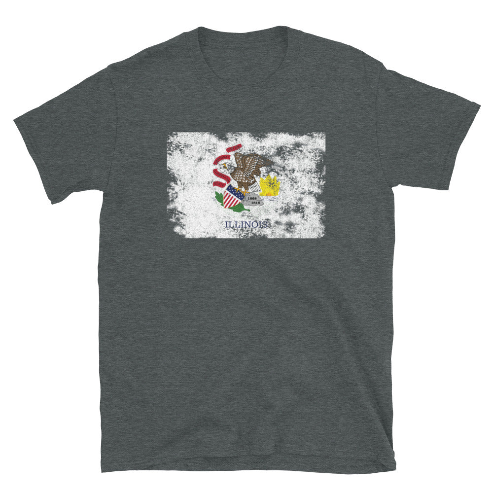 Celebrate your heritage with our Distressed Illinois State Flag Shirt. Show your pride, support the United States & wear your colors with passion. Buy now!