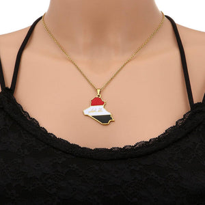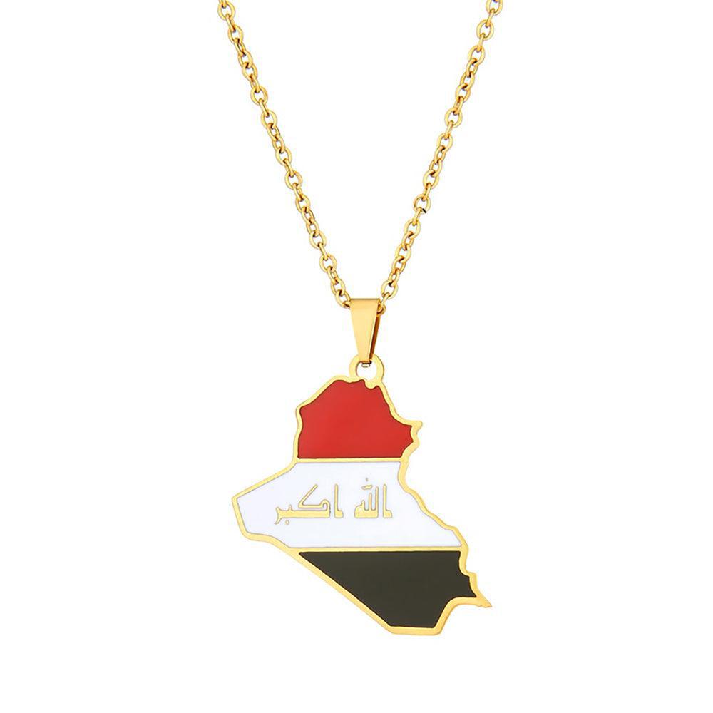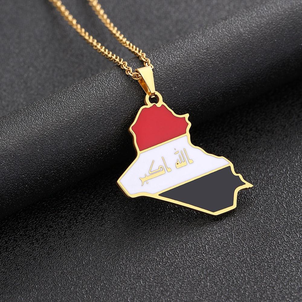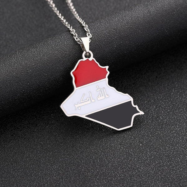 Celebrate your heritage with our Iraq Flag Map Necklace. Show your pride, support your country & wear your pendant with passion. Buy now!