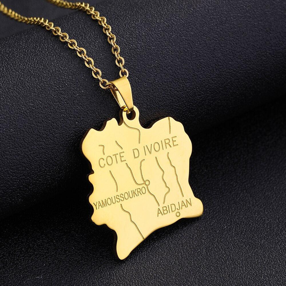 Celebrate your heritage with our Ivory Coast Map Necklace. Show your pride, support your country & wear your pendant with passion. Buy now!