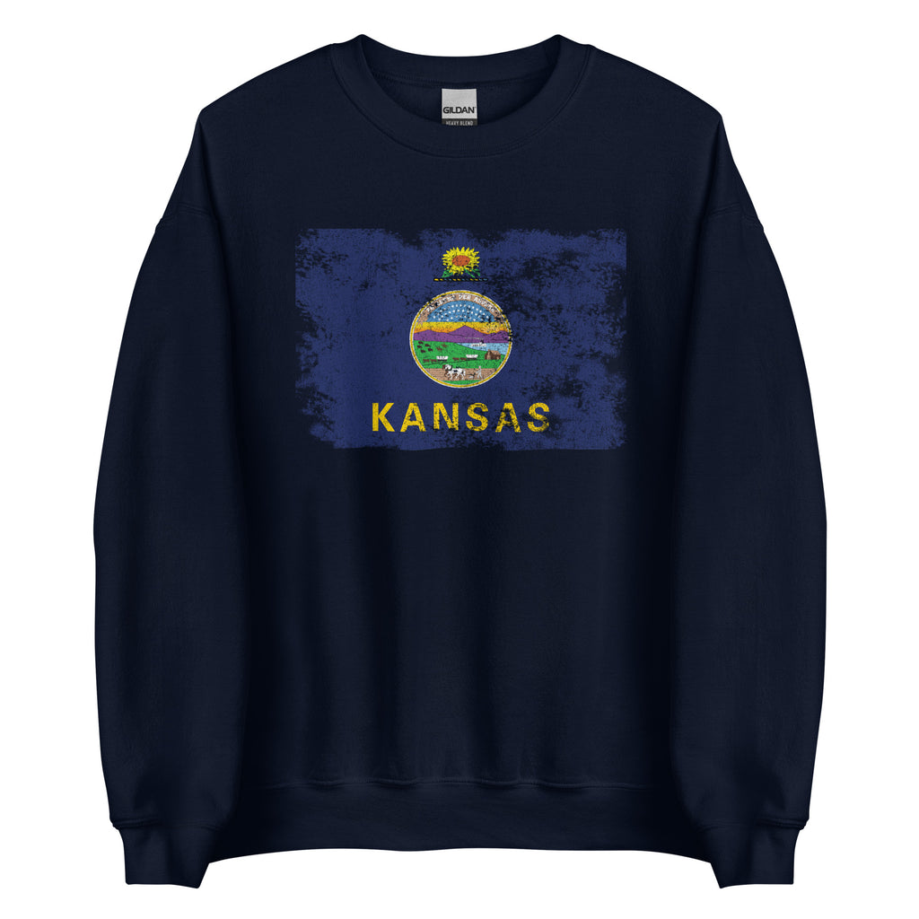 Celebrate your heritage with our Distressed Kansas State Flag Sweatshirt. Show your pride, support your country & wear your colors with passion. Buy now!