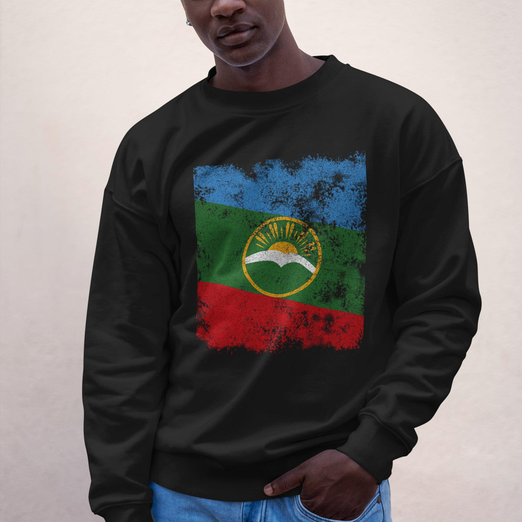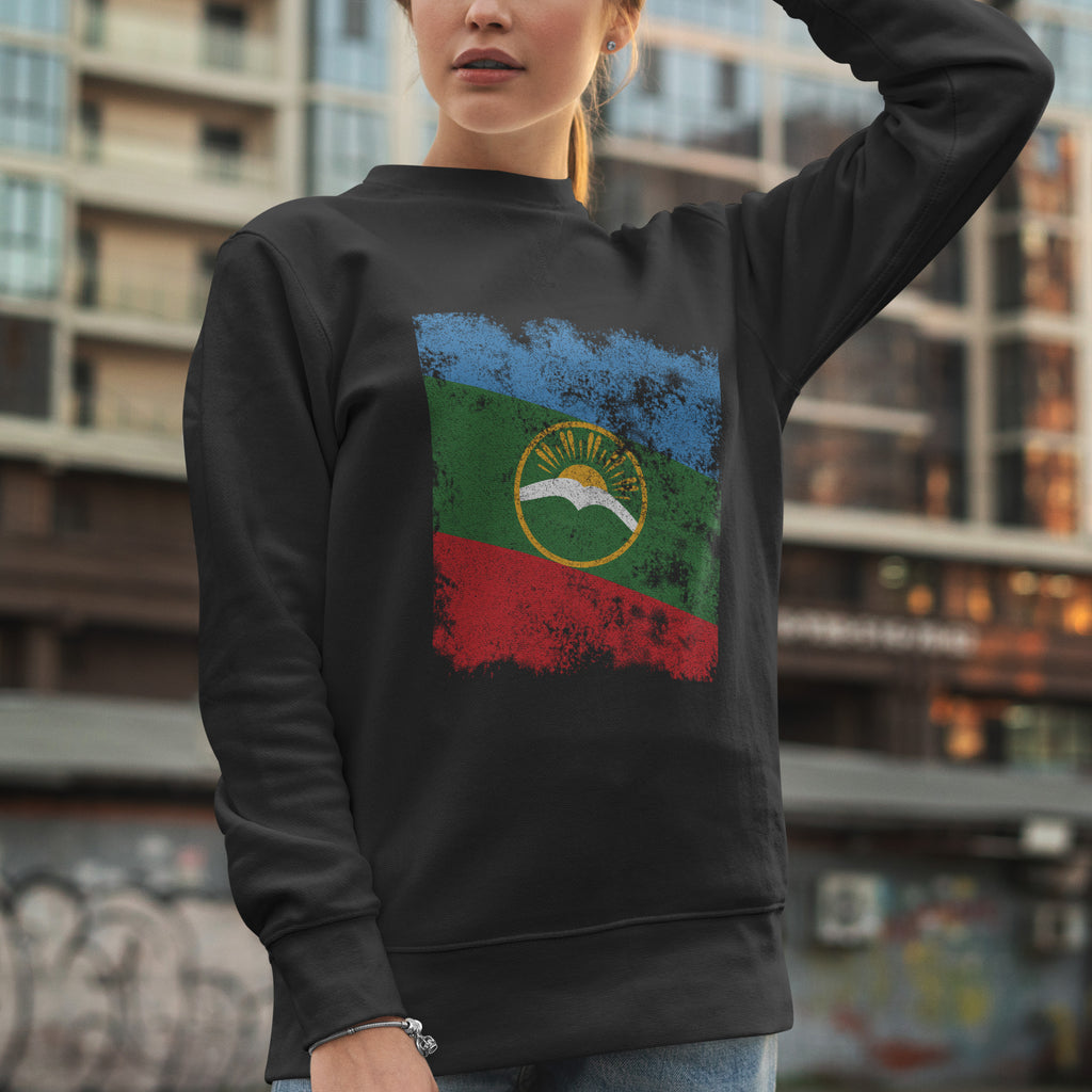 Celebrate your heritage with our Distressed Karachay Cherkessia Flag Sweatshirt. Show your pride, support your country & wear your colors with passion. Buy now!