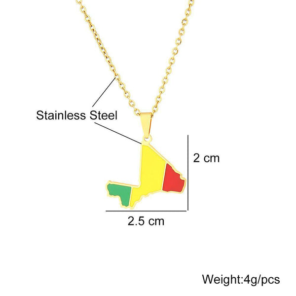 Mali Flag Map Necklace. Show your pride, support your country & wear your pendant with passion. Buy now!