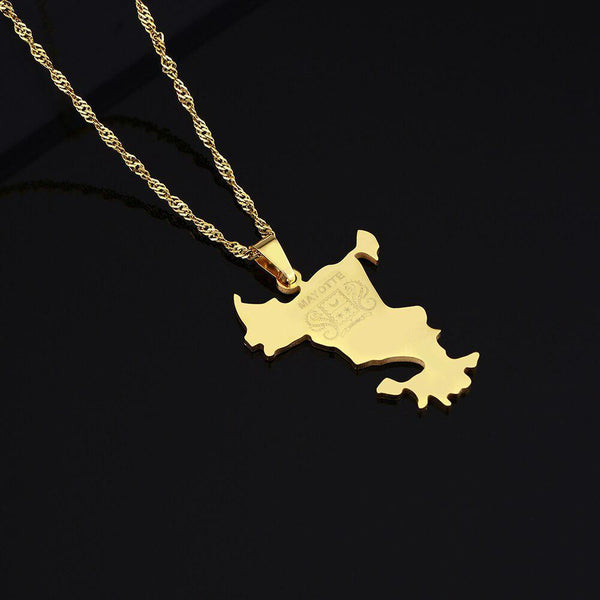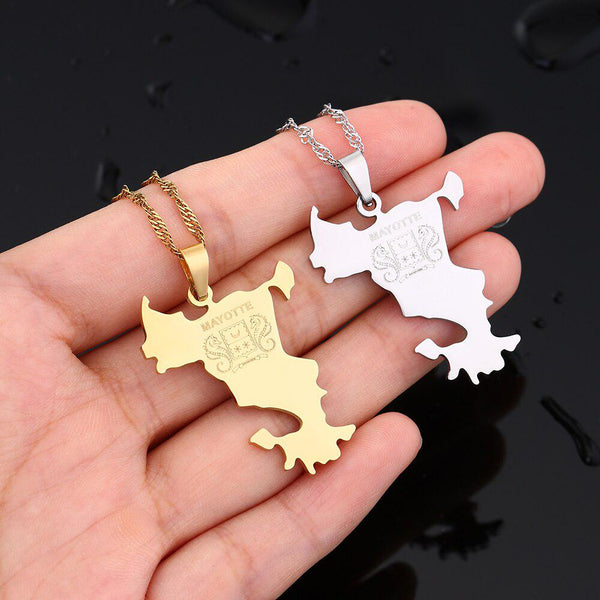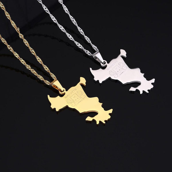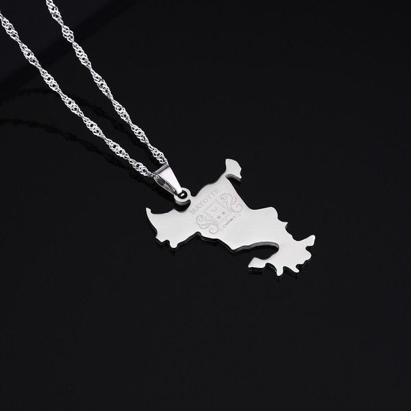 Celebrate your heritage with our Mayotte Flag Map Necklace. Show your pride, support your country & wear your pendant with passion. Buy now!