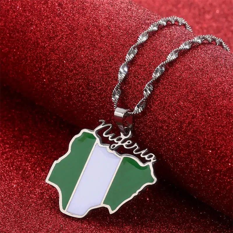 Elevate your heritage with our Nigeria Flag Map Necklace. Show your pride, support your country & wear your pendant with passion. Buy now!