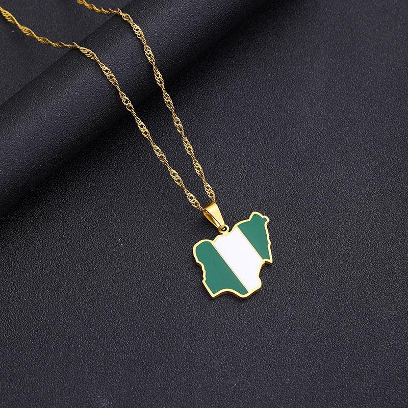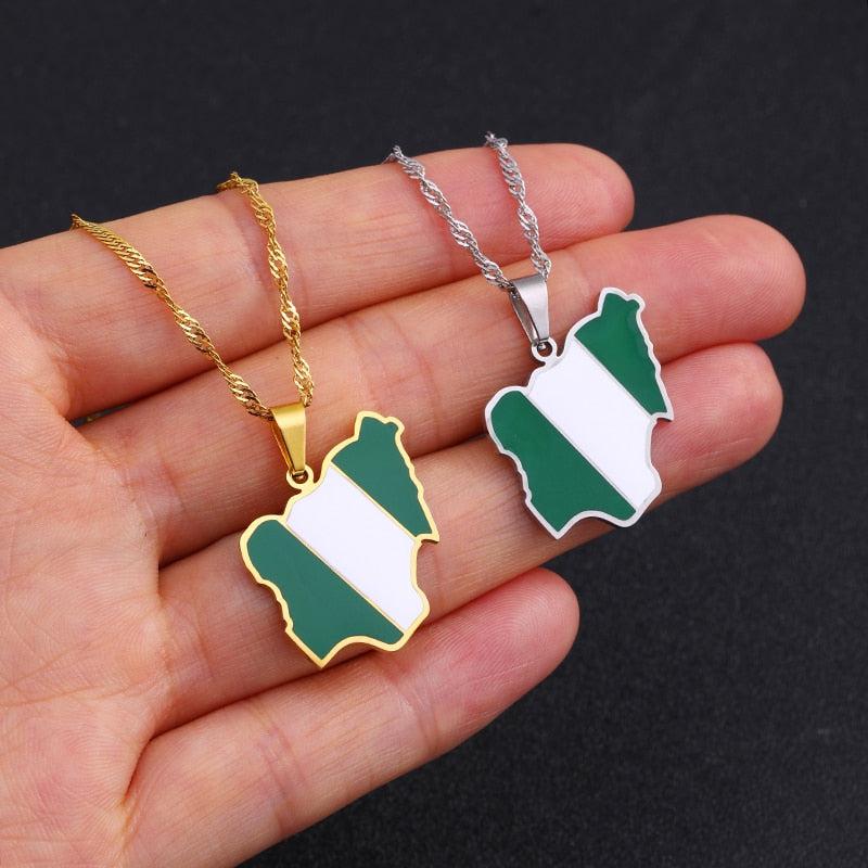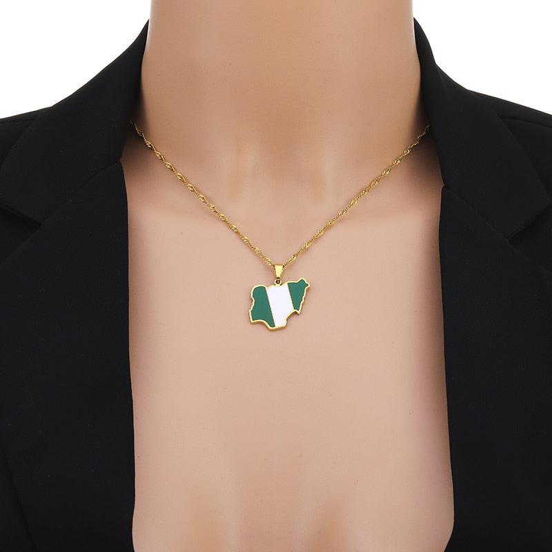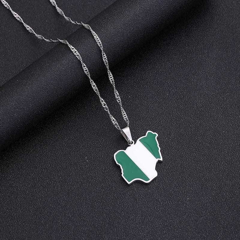 Celebrate your heritage with our Nigeria Flag Map Necklace. Show your pride, support your country & wear your pendant with passion. Buy now!