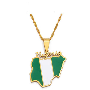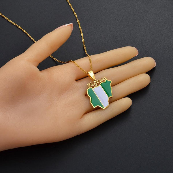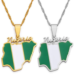 Elevate your heritage with our Nigeria Flag Map Necklace. Show your pride, support your country & wear your pendant with passion. Buy now!