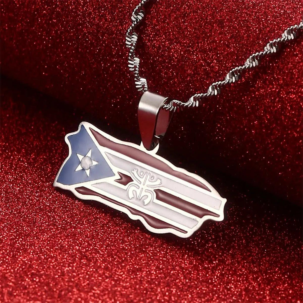 Celebrate your heritage with our Puerto Rico Flag Map Necklace. Show your pride, support your country & wear your pendant with passion. Buy now!