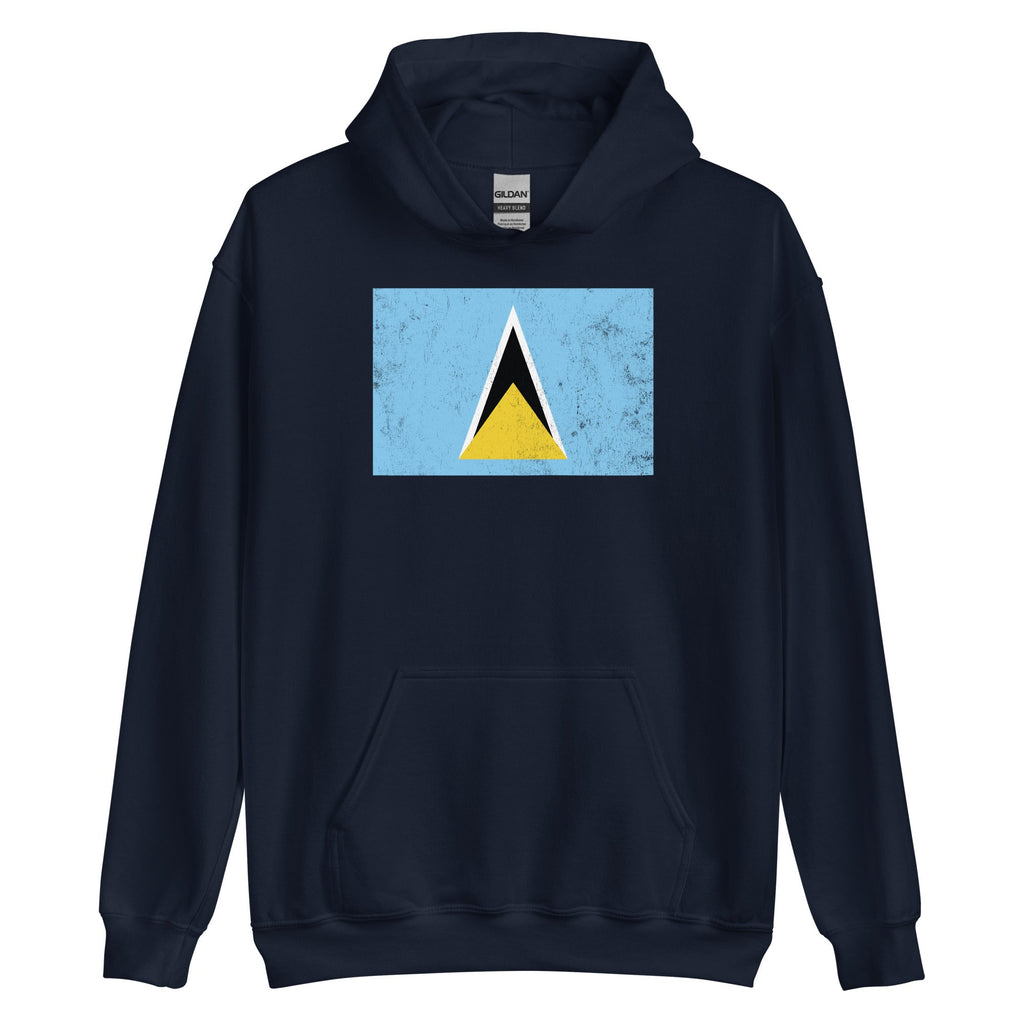 Celebrate your heritage with our Distressed Saint Lucia Flag Hoodie. Show your pride, support your country & wear your colors with passion. Buy now!
