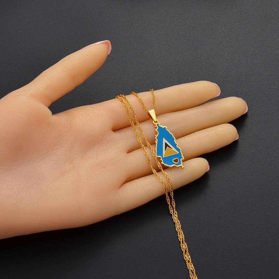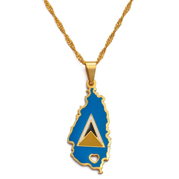 Saint Lucia Flag Map Necklace. Show your pride, support your country & wear your pendant with passion. Buy now!