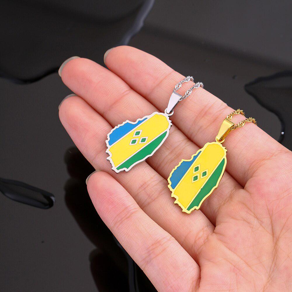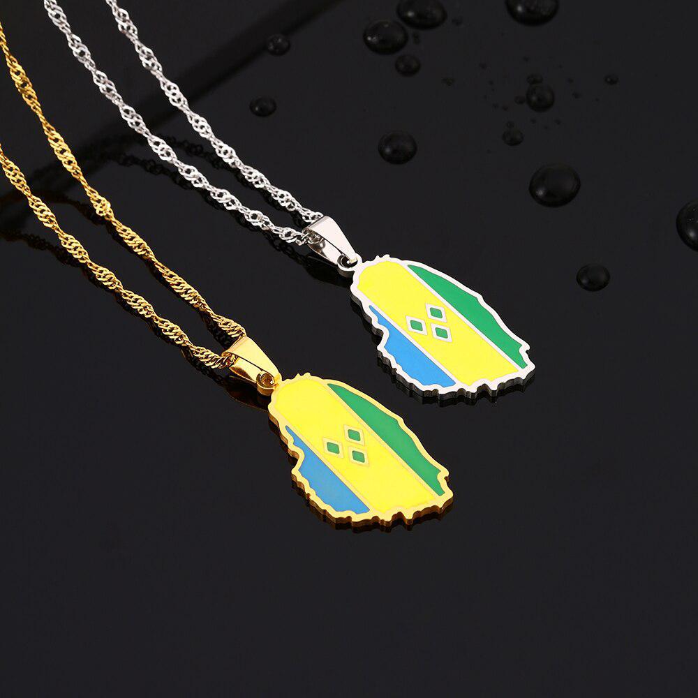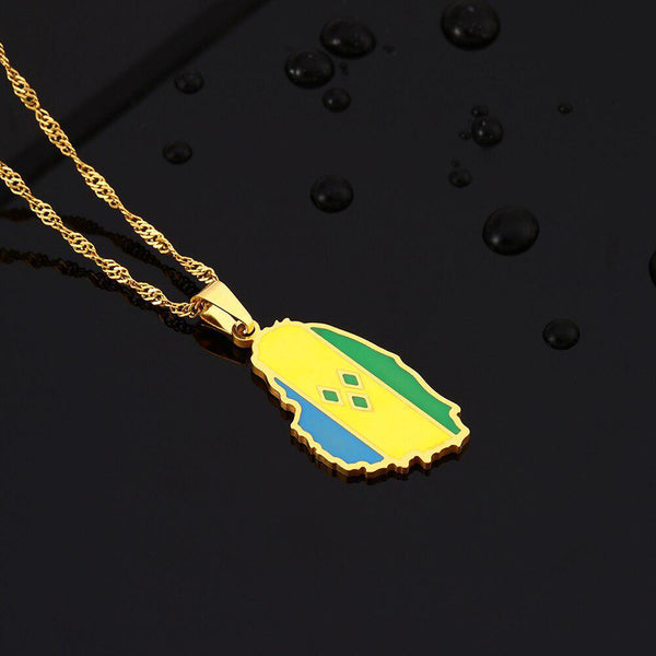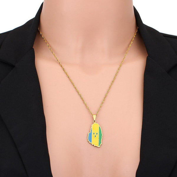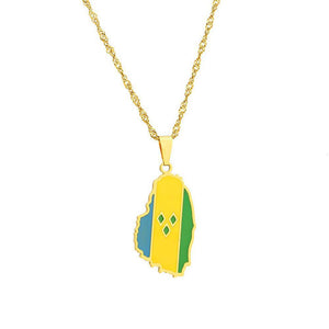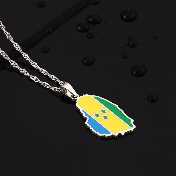 Celebrate your heritage with our Saint Vincent Flag Map Necklace. Show your pride, support your country & wear your pendant with passion. Buy now!