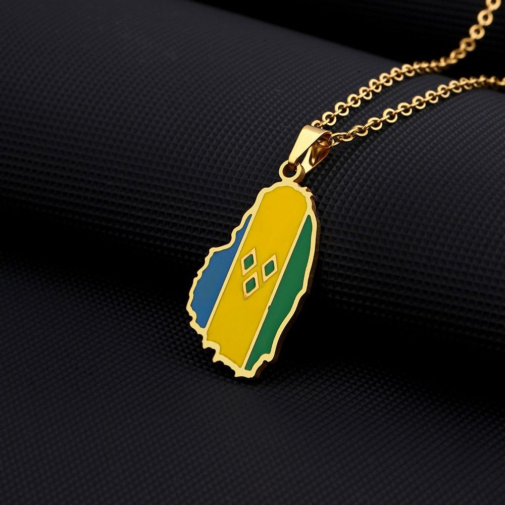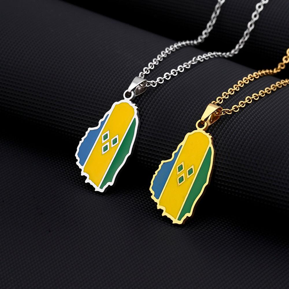 Saint Vincent Flag Map Necklace. Show your pride, support your country & wear your pendant with passion. Buy now!