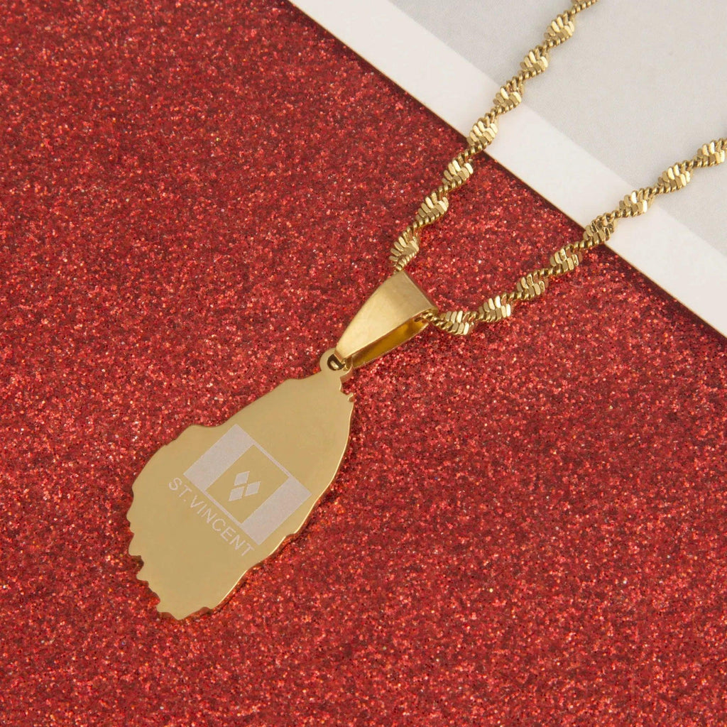 with our Saint Vincent Flag Map Necklace. Show your pride, support your country & wear your pendant with passion. Buy now!