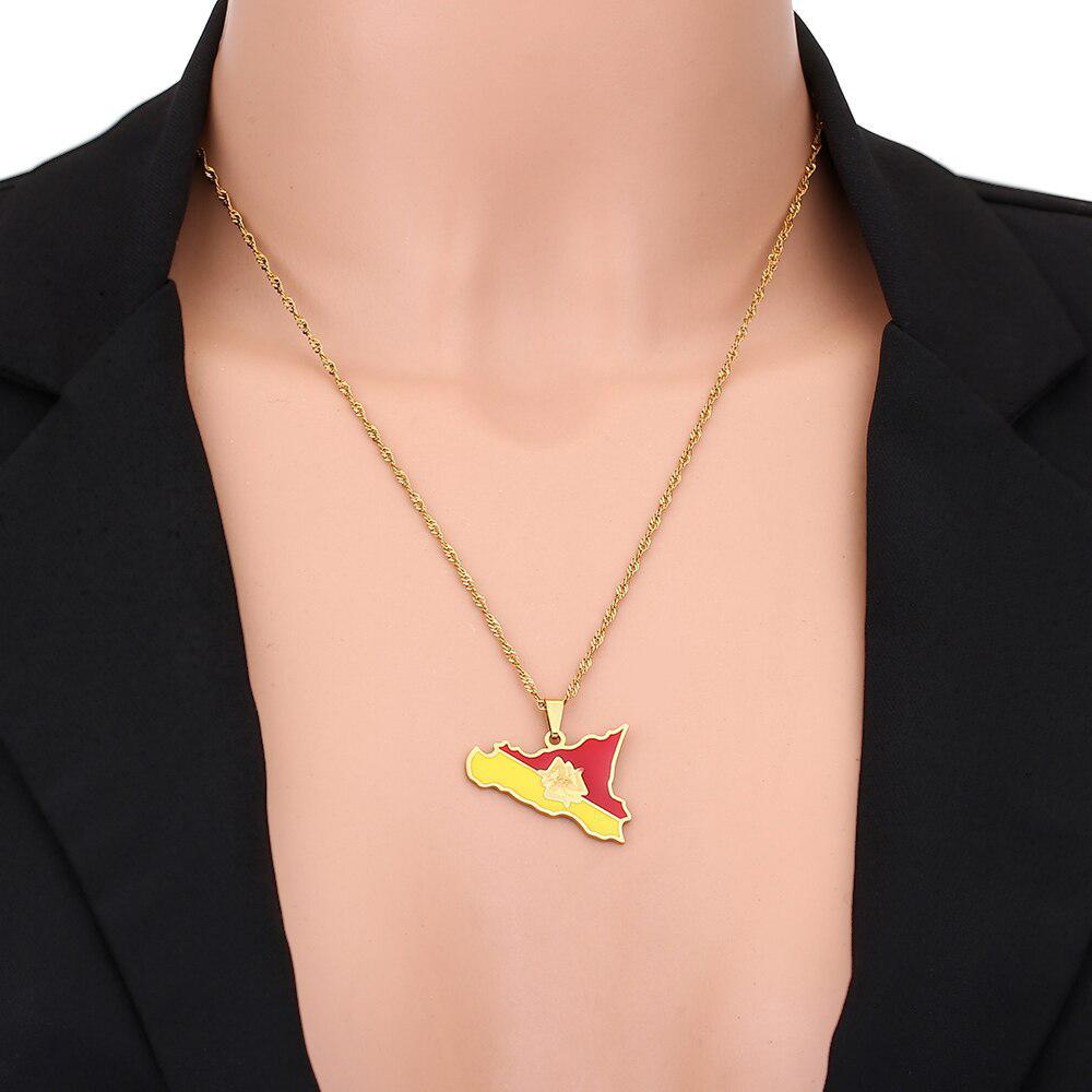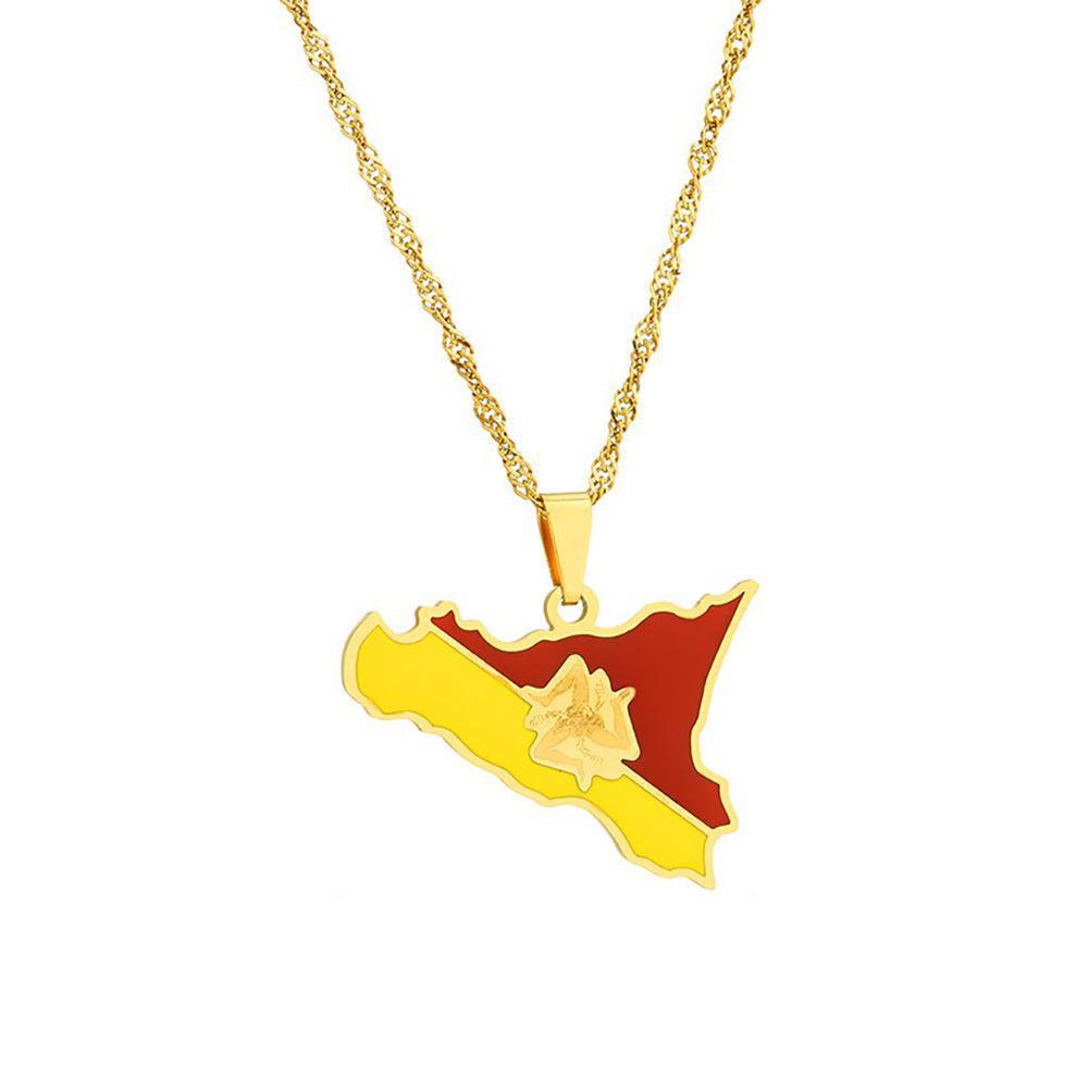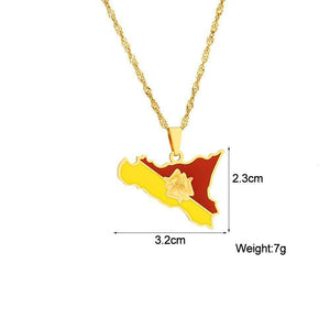 Elevate your heritage with our Sicily Flag Map Necklace. Show your pride, support your country & wear your pendant with passion. Buy now!
