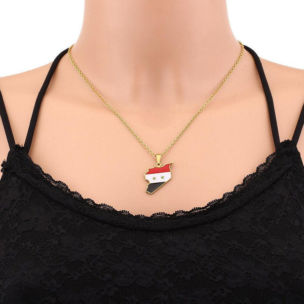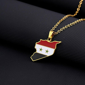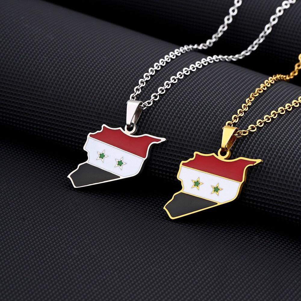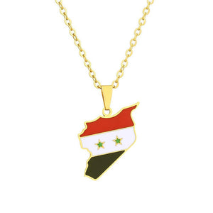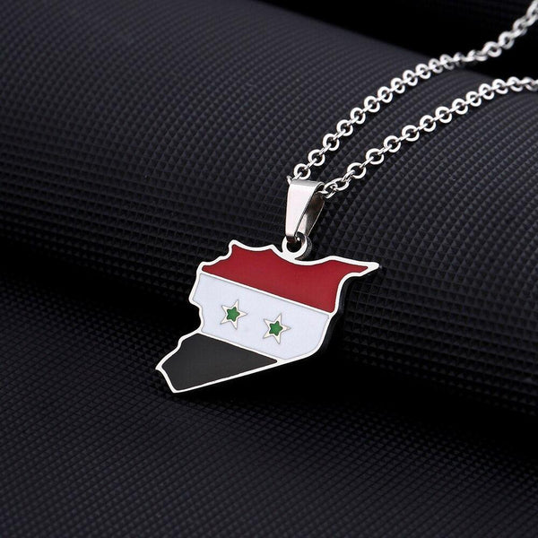 Elevate your heritage with our Syria Flag Map Necklace. Show your pride, support your country & wear your pendant with passion. Buy now!