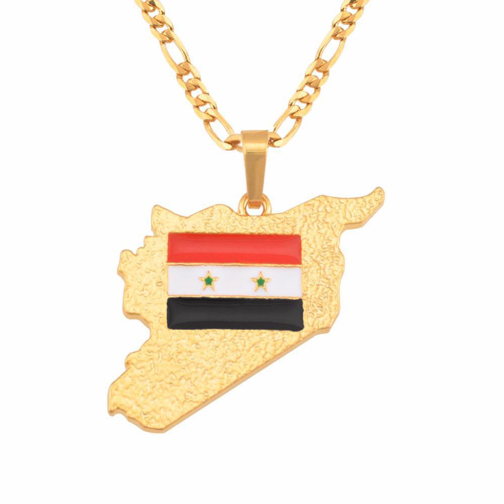 Celebrate your heritage with our Syria Flag Map Necklace. Show your pride, support your country & wear your pendant with passion. Buy now!