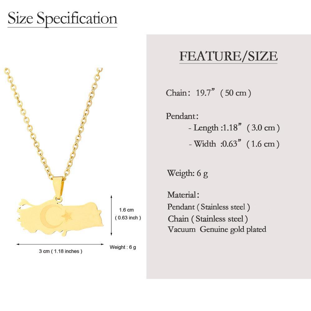 Celebrate your heritage with our Turkey Flag Map Necklace. Show your pride, support your country & wear your pendant with passion. Buy now!