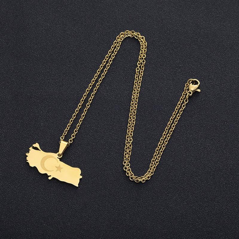 Turkey Flag Map Necklace