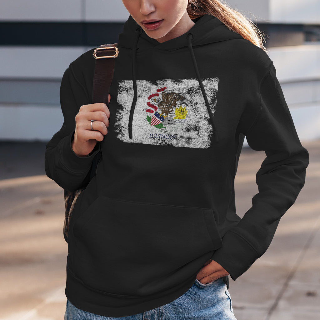 Відзначте свою спадщину з нашим худі з потертою ілюстрацією прапора штату Іллінойс. Покажіть свою гордість, підтримайте Сполучені Штати та носіть свої кольори з пристрастю. Купуйте зараз!